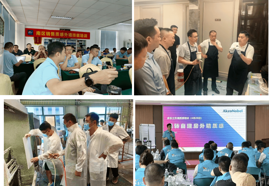 阿克苏诺贝尔装饰漆学院为此专门开展针对“朗境”系列产品的专业培训,目前已经完成全国范围内的销售以及经销商工人的首轮培训,培训内容包括产品知识、工艺拆解、应用分析、实操训练、施工体验等。能够熟练施工岩彩、真石漆的工人,可以说是掌握了一种“稀缺技能”,从普通油漆工晋升为理解美学、精通工艺的高技能工匠。