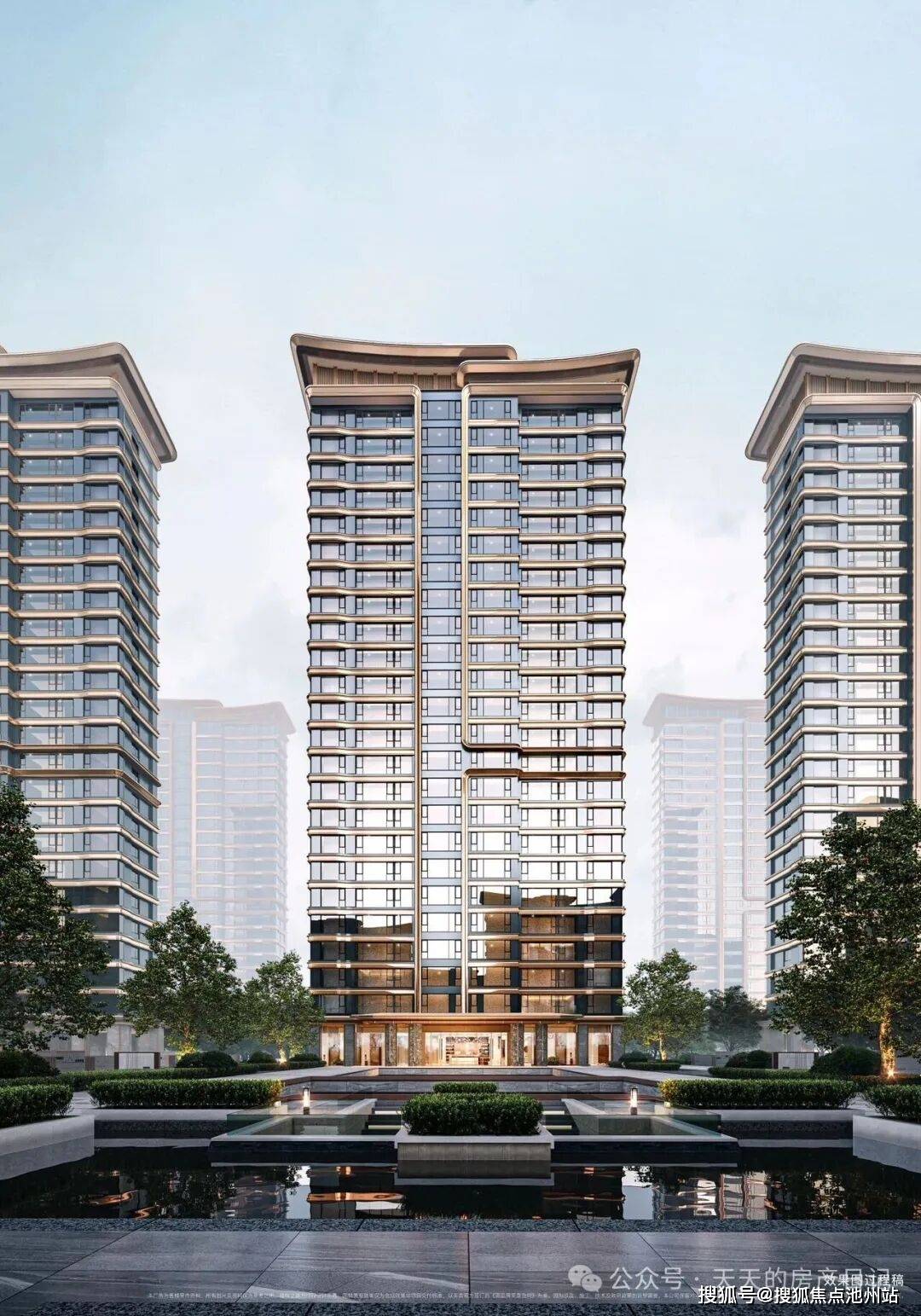 摒弃单一水景的单调,以 “平面 + 下沉 + 垂直” 的立体布局,呈现多元水韵之美: