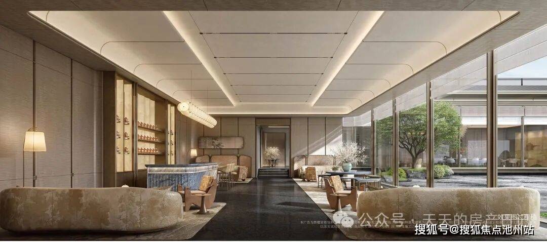 :打造低于地面的中庭水景,通过高低差形成围合式静谧空间,周边搭配连廊、叠石与水生植物,光影透过树叶洒在水面,营造 “曲径通幽、静谧深邃” 的氛围,是邻里休憩、独处静思的绝佳场所;