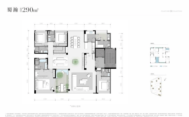 国宾7号院摒弃传统小户型,专注于建面约290㎡至389㎡的家族平层大宅。所有户型均以“空中院落”为核心理念,在都市核心实现独门独院、私家花园的别墅级生活体验,其空间尺度与功能规划均超越居住本身,旨在服务于家族的世代传承、顶级社交与精神文化的安放。