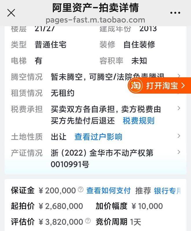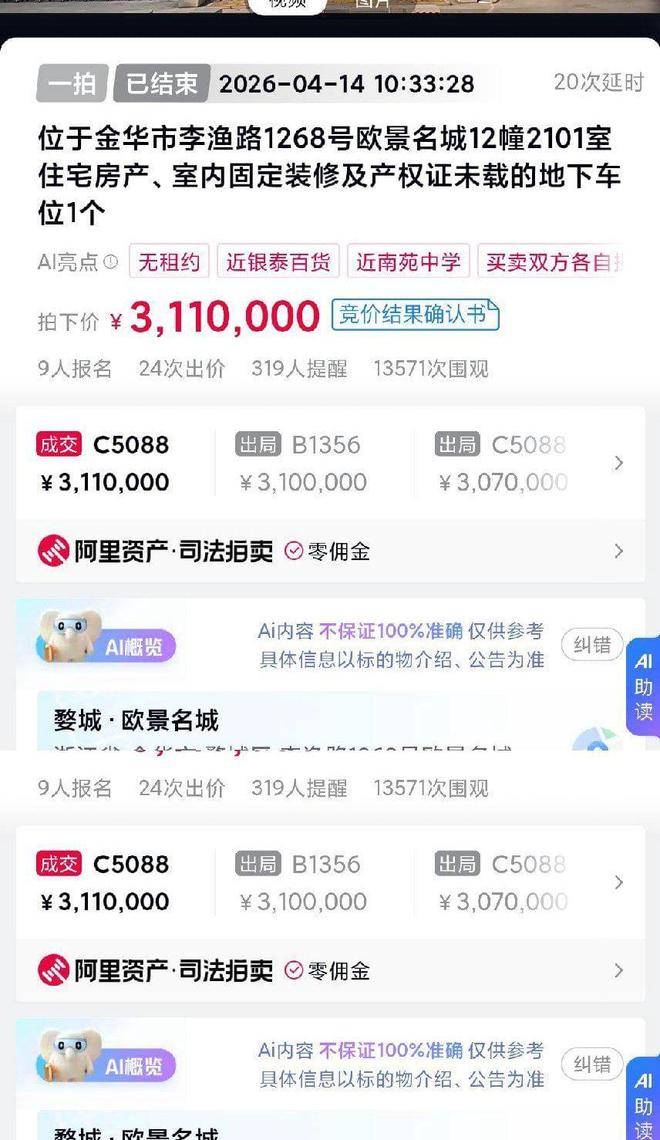 4月14日,欧景名城有一套房子法牌。这套房子上积192平米,位于21楼,这套房子的评估价格是382万,而起拍价仅268万,结果,经过24轮的竞拍,最终以311万成交。